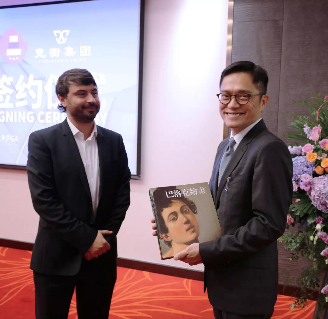 FOOD GENIUS ACADEMY代表向竞衡集团詹益森董事长赠意大利文化书籍