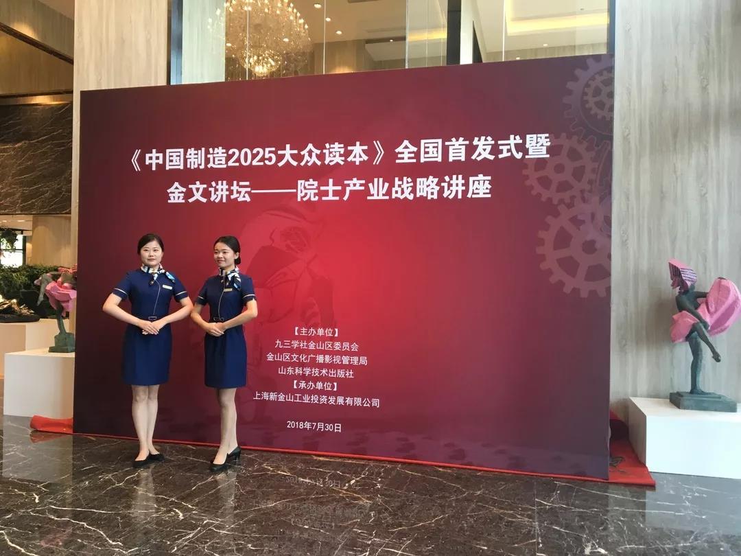 《中国制造2025大众读本》丛书全国首发式暨金文讲坛——院士产业战略讲座在上海市金山工业区竞衡88广场远见人文生活馆举办。此次活动由九三学社金山区委员会、金山区文化广播影视管理局、山东科学技术出版社共同主办。首发仪式安排在上海金山工业区,不仅是由于该园区为上海重点支持发展的九大市级园区,更是因为该园区是发展速度最快的市级开发区之一。